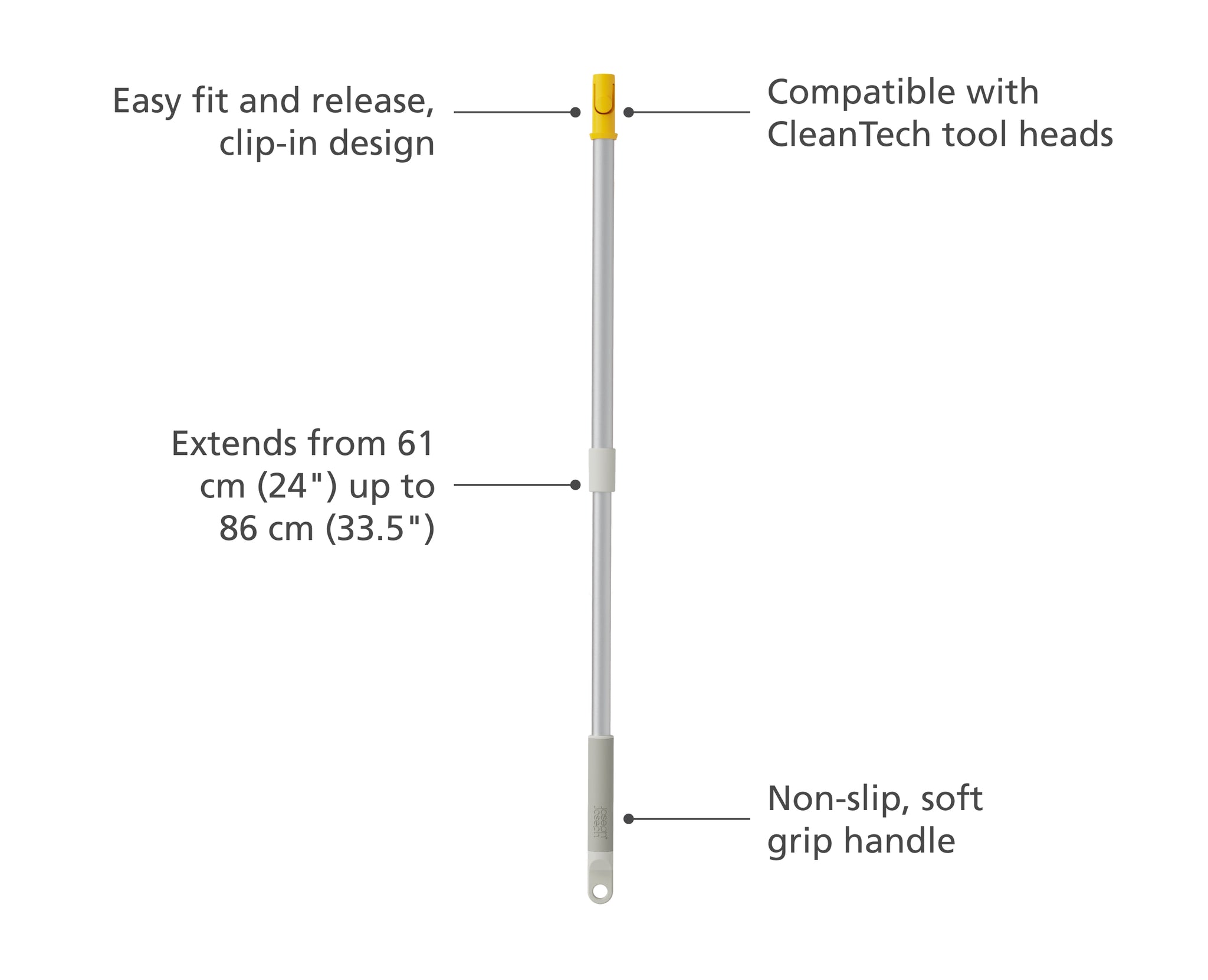 Reach new cleaning heights with this extendable aluminium pole. Adjustable from 61 to 86 cm for accessing high or awkward areas. Compatible with CleanTech™ tools.