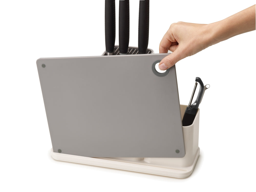 - This highly practical organiser lets you store all your essentials in one convenient place and includes a non-slip chopping board.