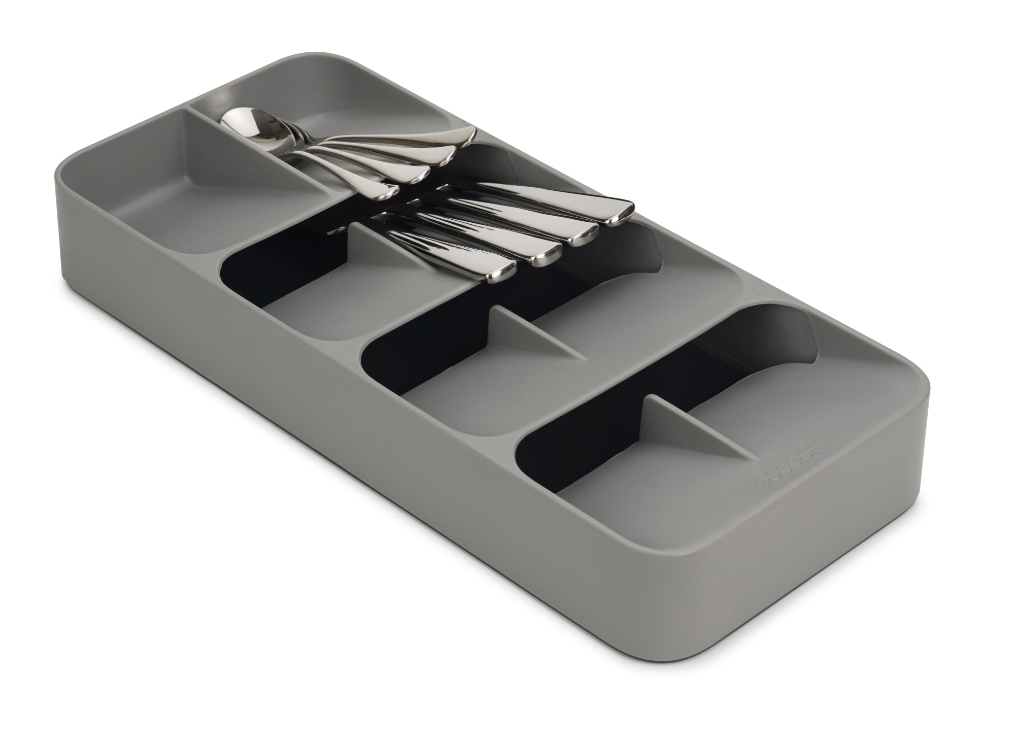 - The unique design of this cutlery tray features angled compartments that layer on top of each other, enabling over 48 pieces of cutlery to be stored in less space than a conventional cutlery tray holding much less.
