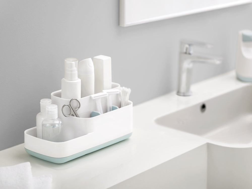 - EasyStore™ Bathroom caddy is divided into a range of compartments of varying shape, size and depth- perfect for storing small items such as scissors, brushes, deodorants, razors and make up.