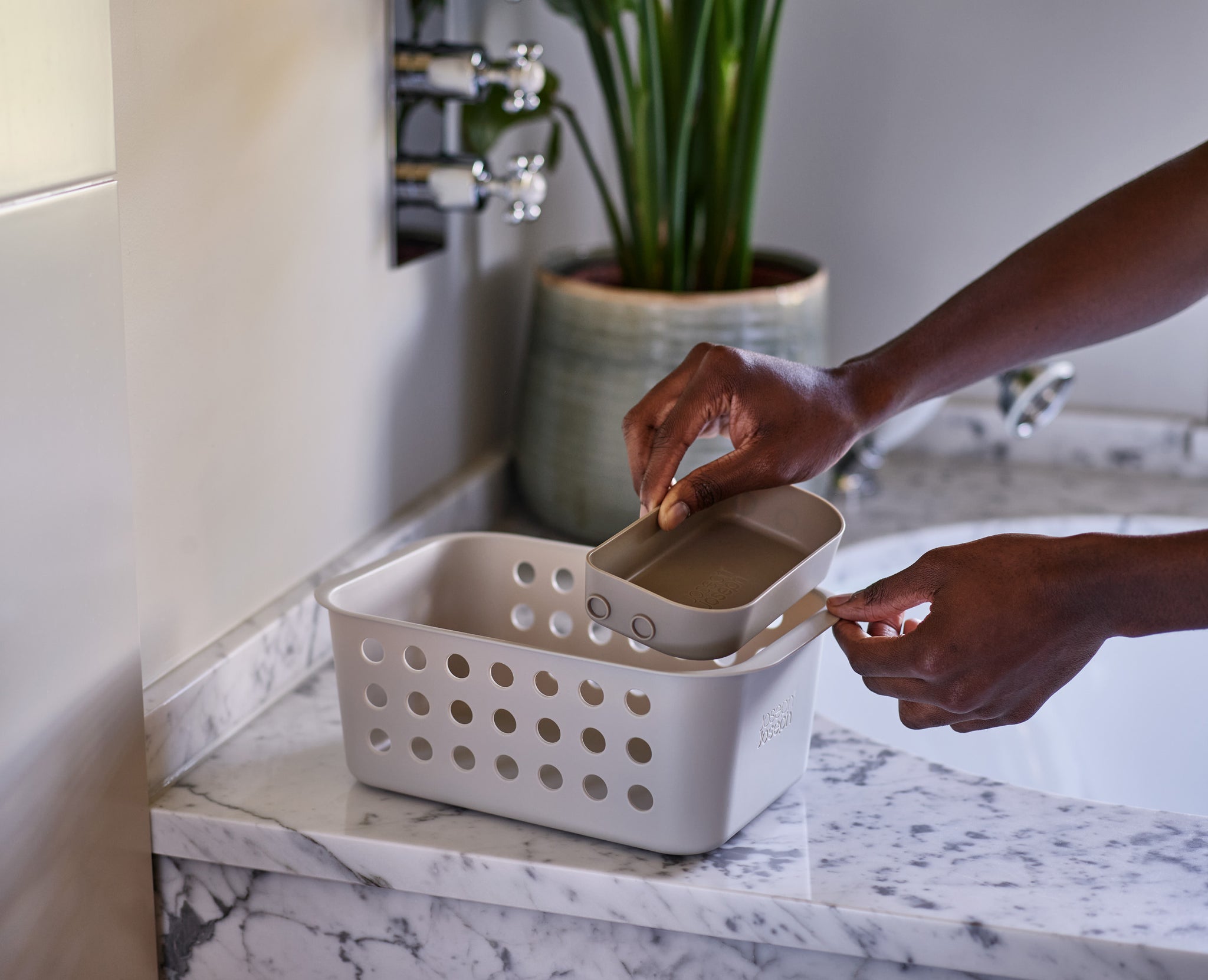 This small bathroom storage basket can store a variety of bathroom essentials and is ideal for organising on shelves or inside drawers.