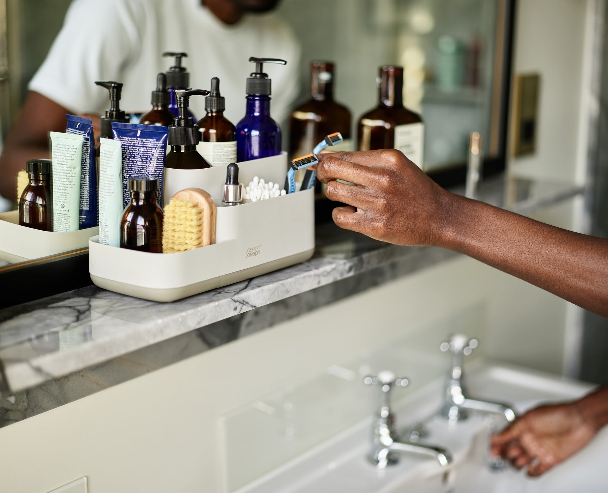 This bathroom caddy has a range of different compartments so you can keep your grooming essentials neat, tidy and easy to find when you need them.