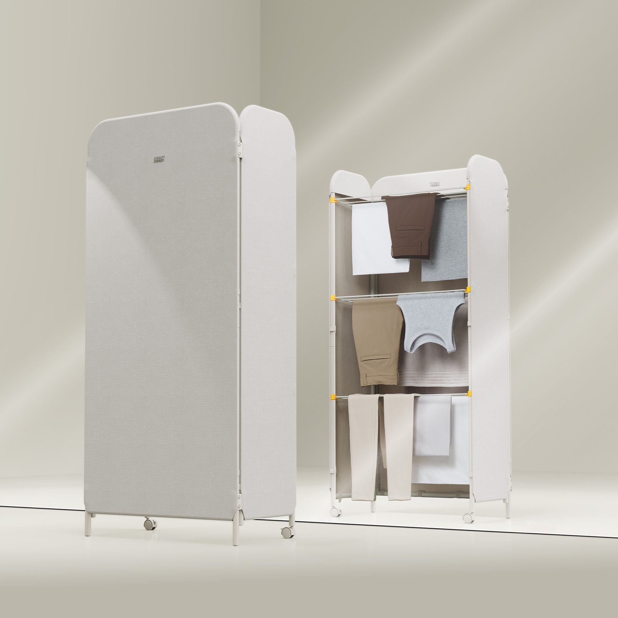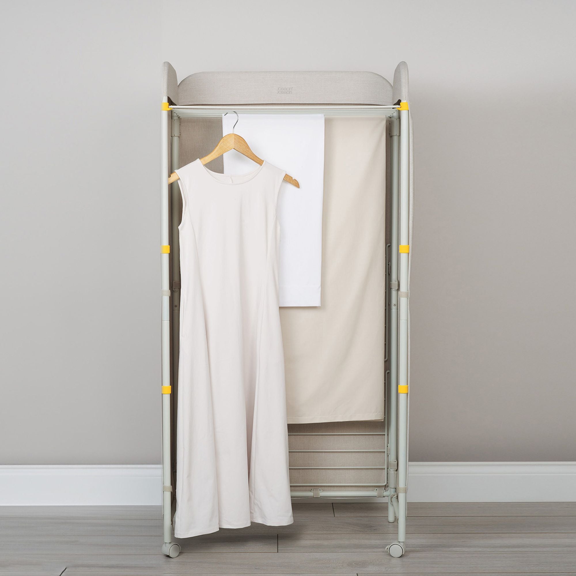 - Stylish fabric exterior keeps washing out of sight whilst drying.