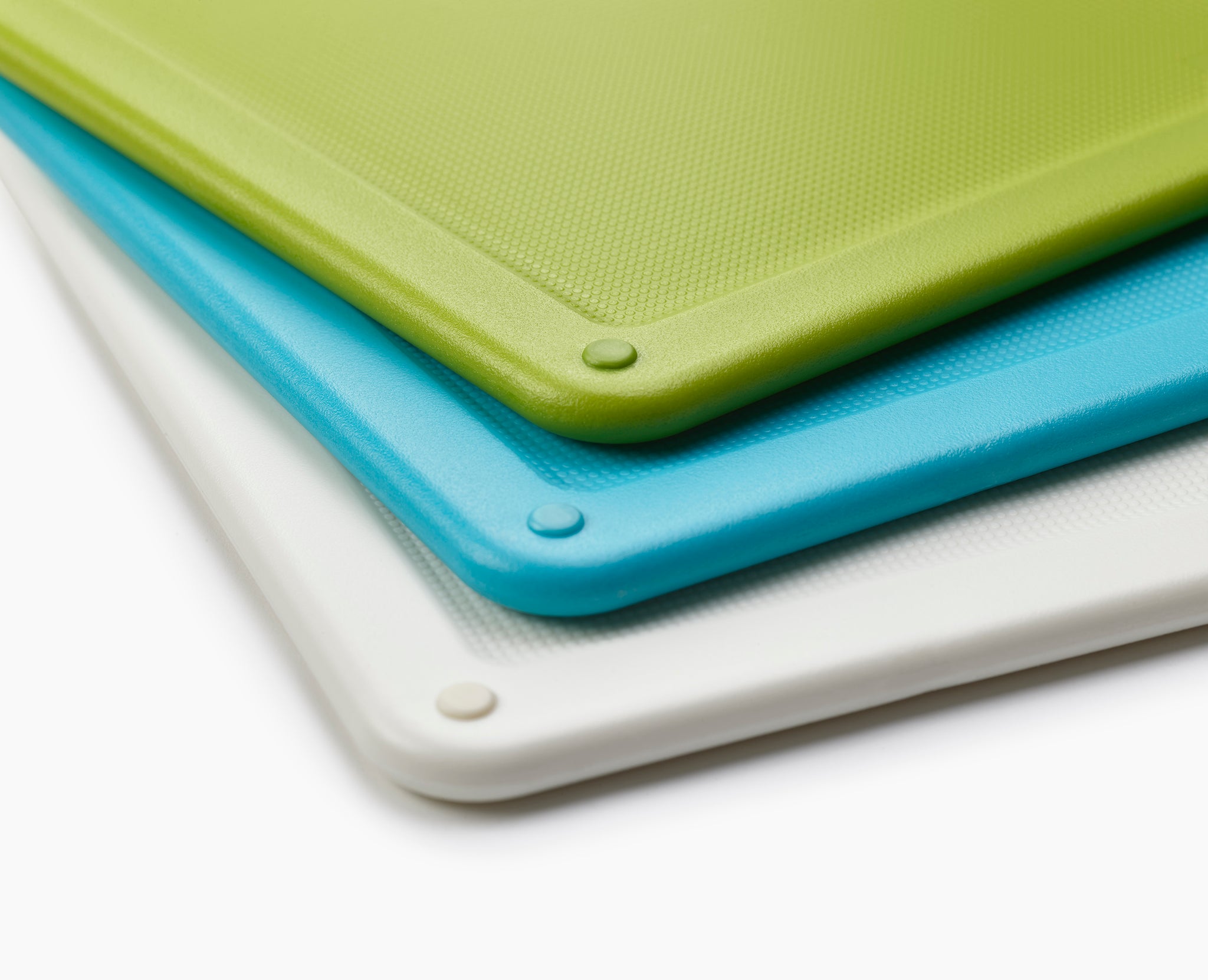 - Includes three double-sided boards with knife-friendly, textured cutting surfaces and non-slip feet
