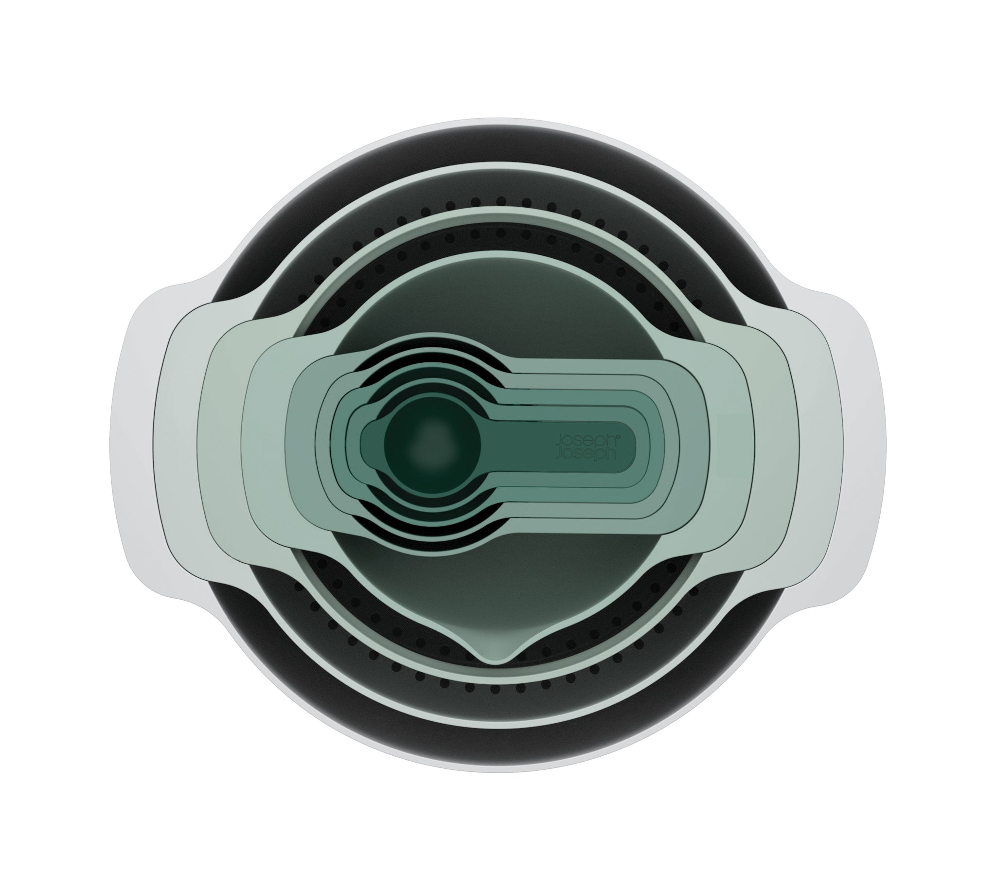 The unique design of this nesting bowl set allows the individual elements to be stacked neatly together, thereby occupying the absolute minimum amount of space.
