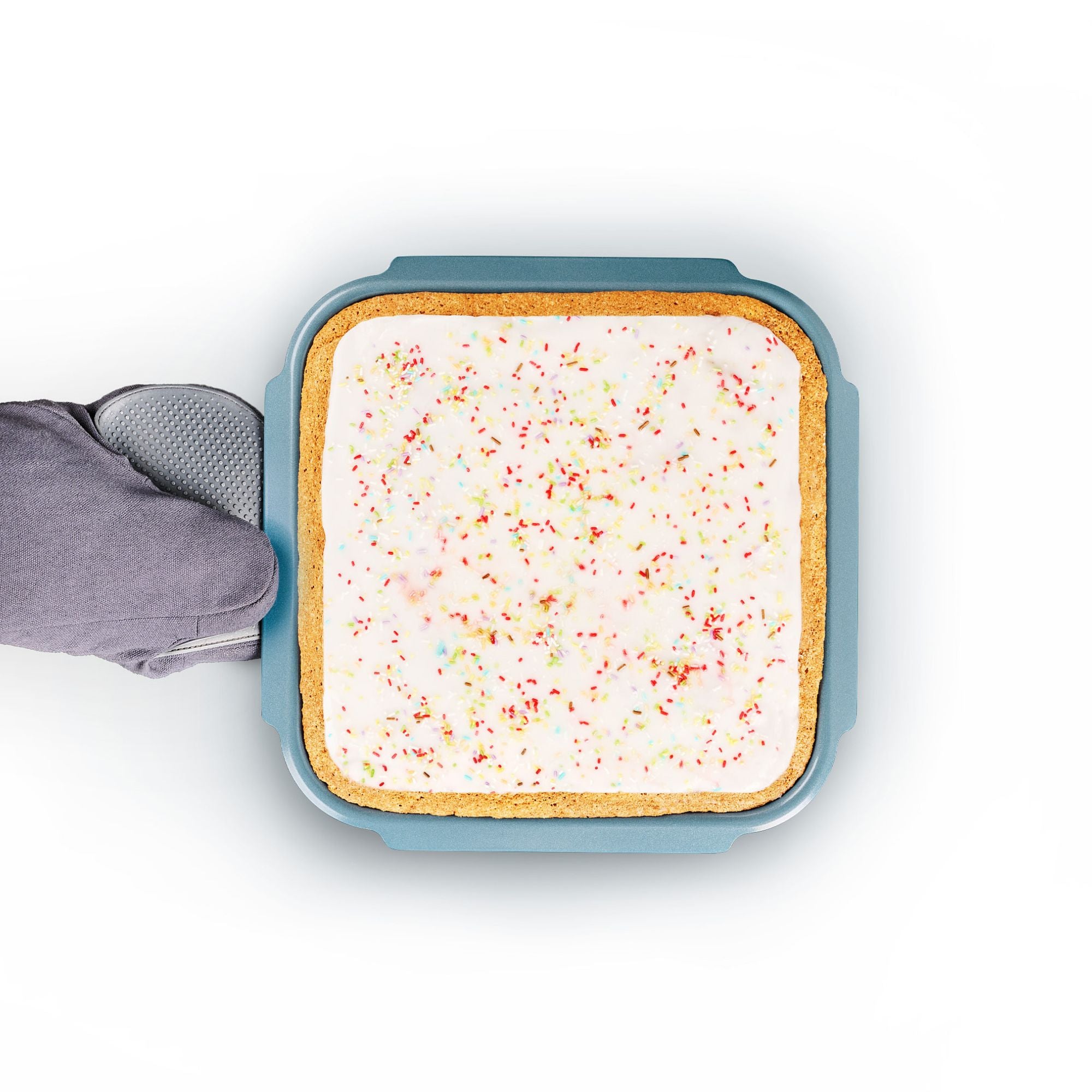 This stackable baking tray features easy-pull handles on the sides to provide a larger gripping point when wearing oven gloves, making it easier and safer to handle.