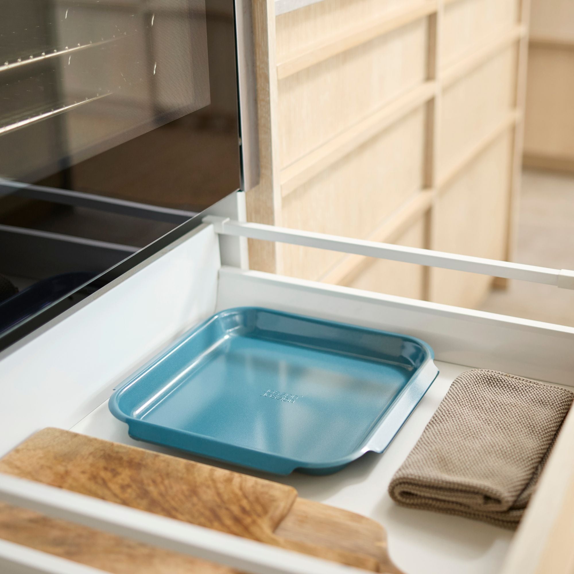 - Designed to stack neatly with selected items in the Nest™ Bake range with space between each tray to improve airflow and avoid scratches.