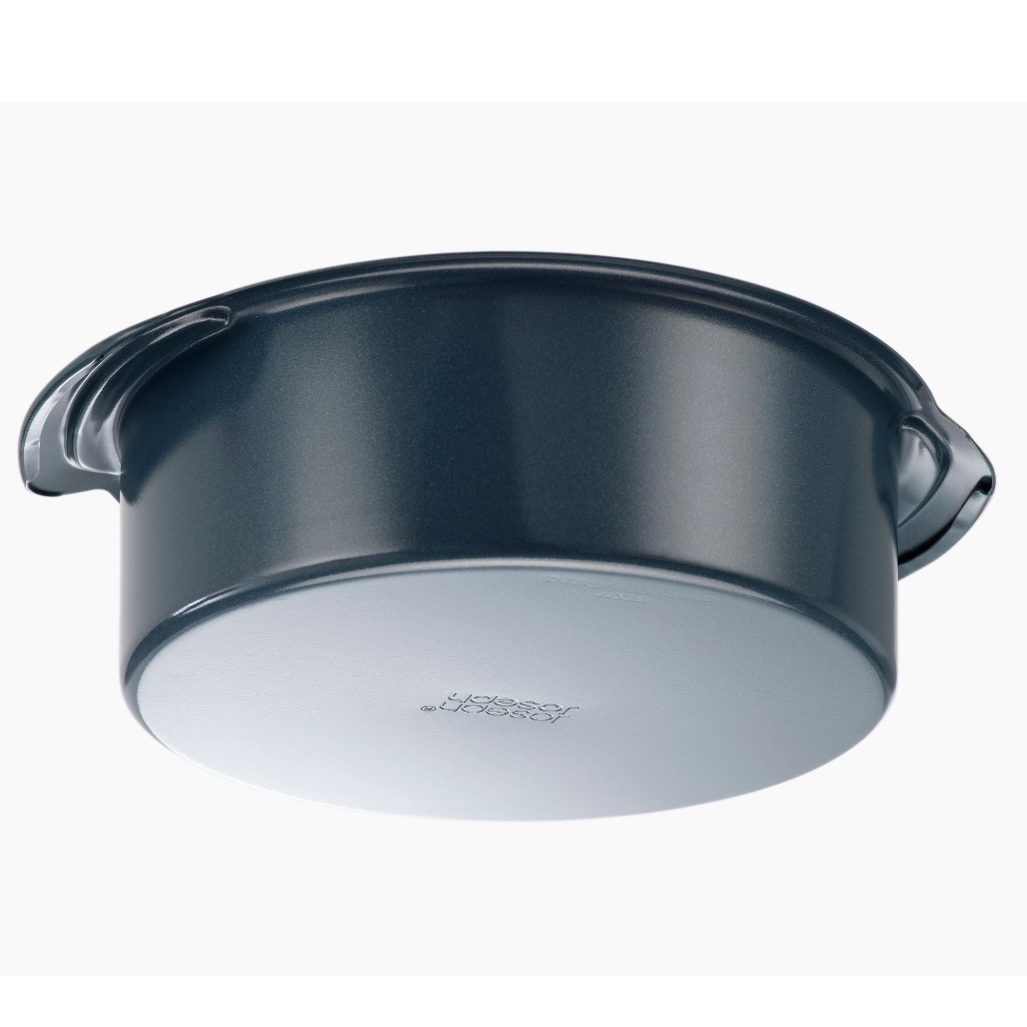 This stackable round cake tin features easy-pull handles on the sides to provide a larger gripping point when wearing oven gloves, making it easier and safer to handle.