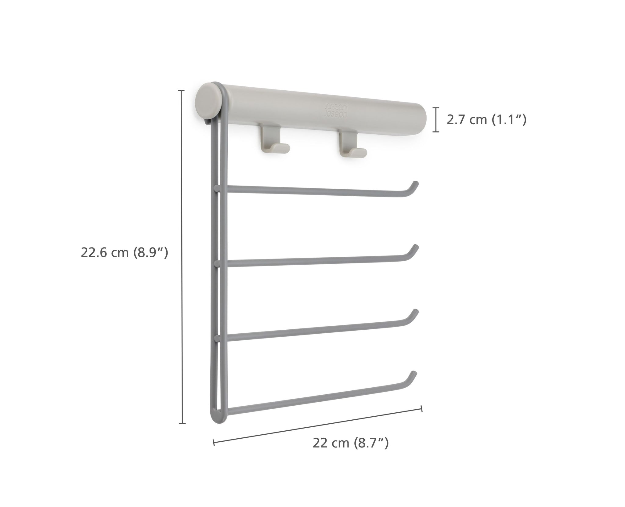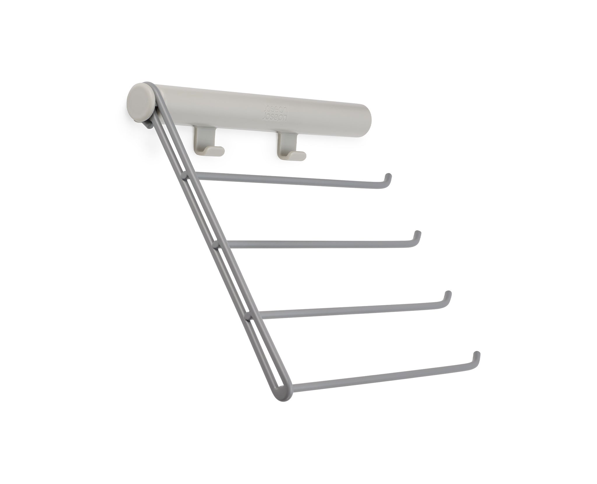 Perfect for mounting inside wardrobes, this clever design lays flat against the mounting surface to save space, and has rails that can be lifted to remove stored items with ease.