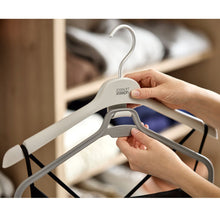 Hassle-free hanging for longer garments, this innovative 2-part hanger shortens and protects longer clothing when hanging.