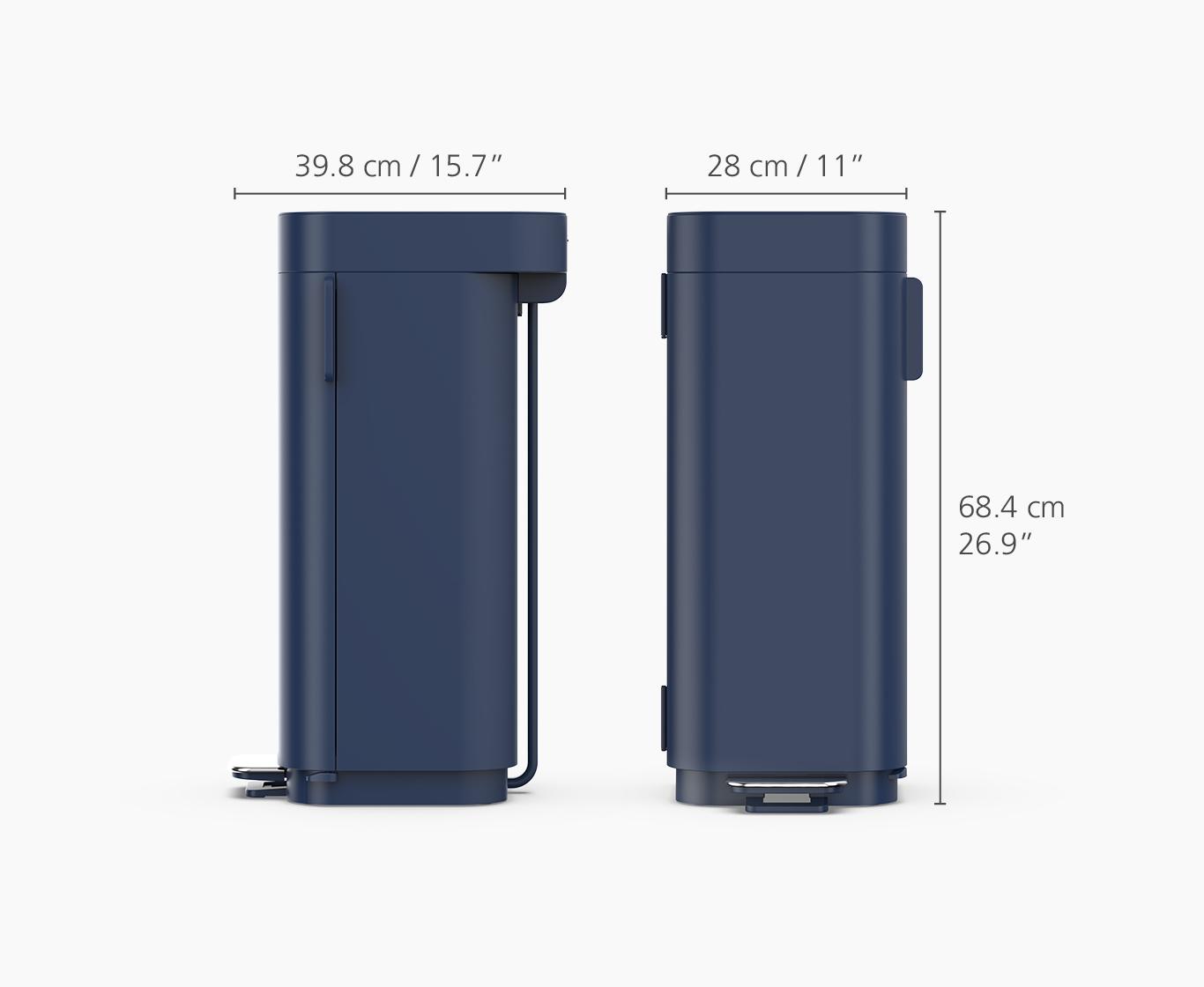 - Hands-free pedal opening and soft-close, stainless-steel lid with fingerprint-proof coating