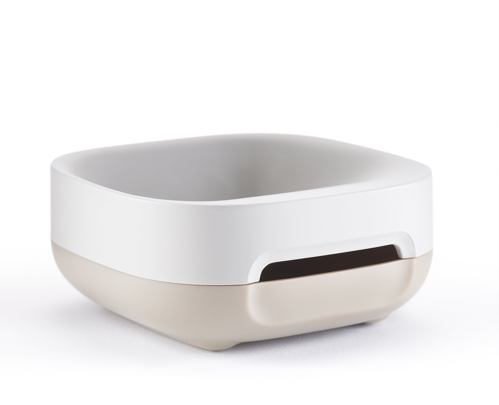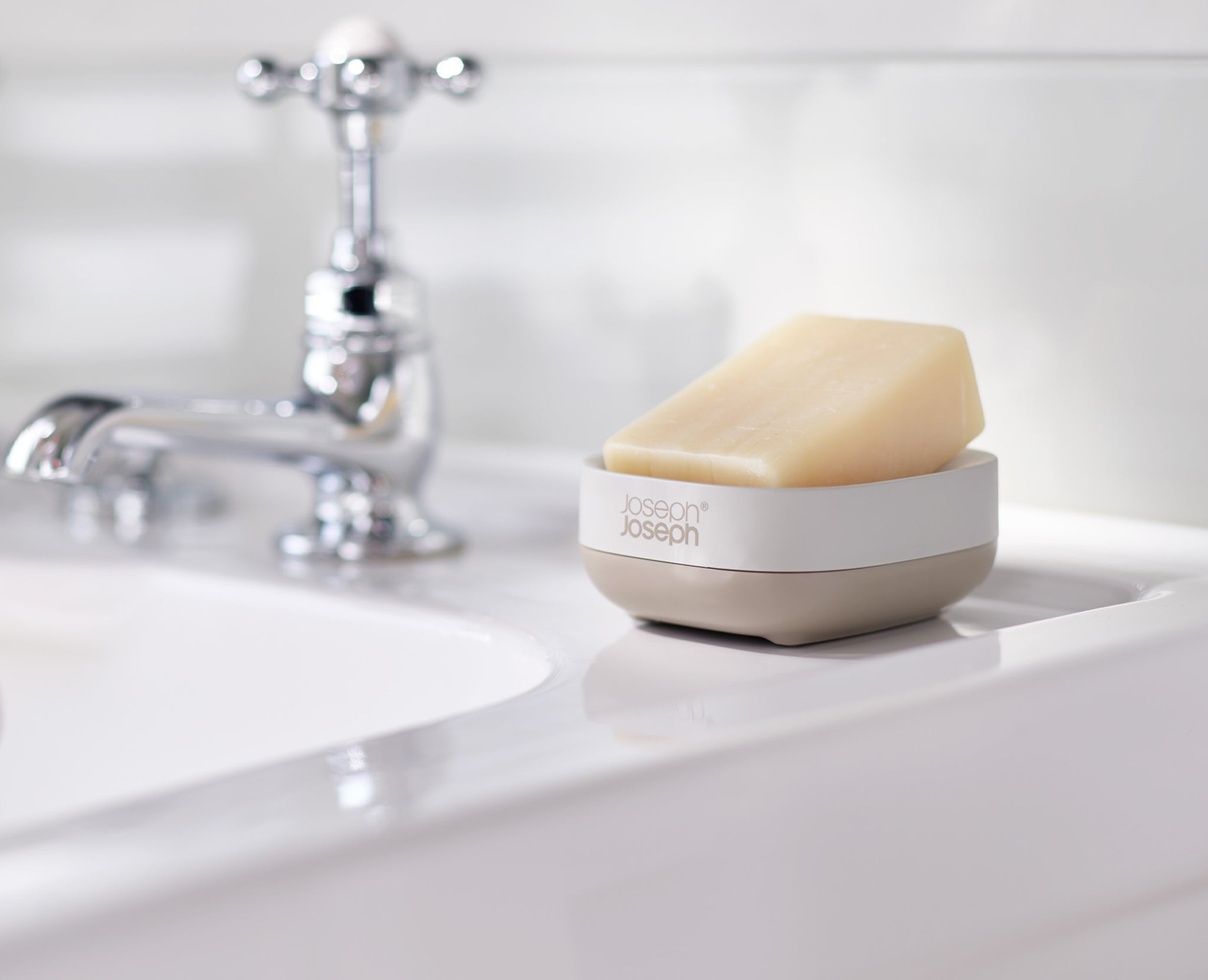 This clever soap dish has a unique, sloping design that saves space and allows any excess water or suds from your soap to neatly drain away.