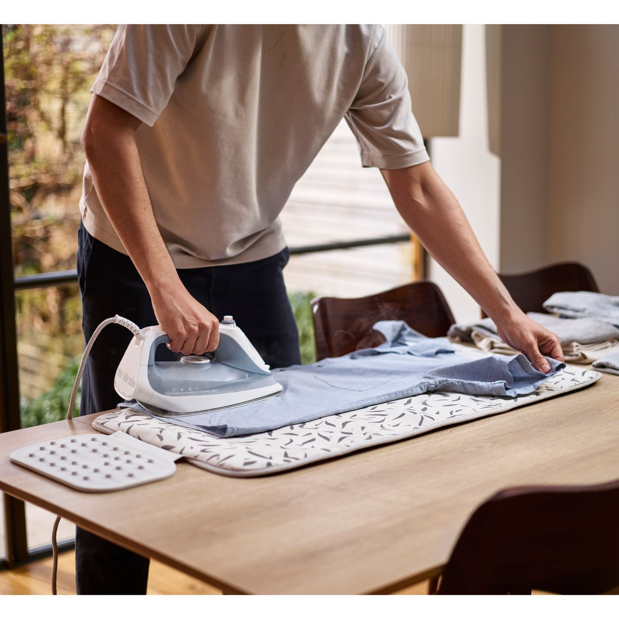 Swift™ allows you to set up an ironing space on any flat surface, delivering high-quality, quick and easy ironing every time.