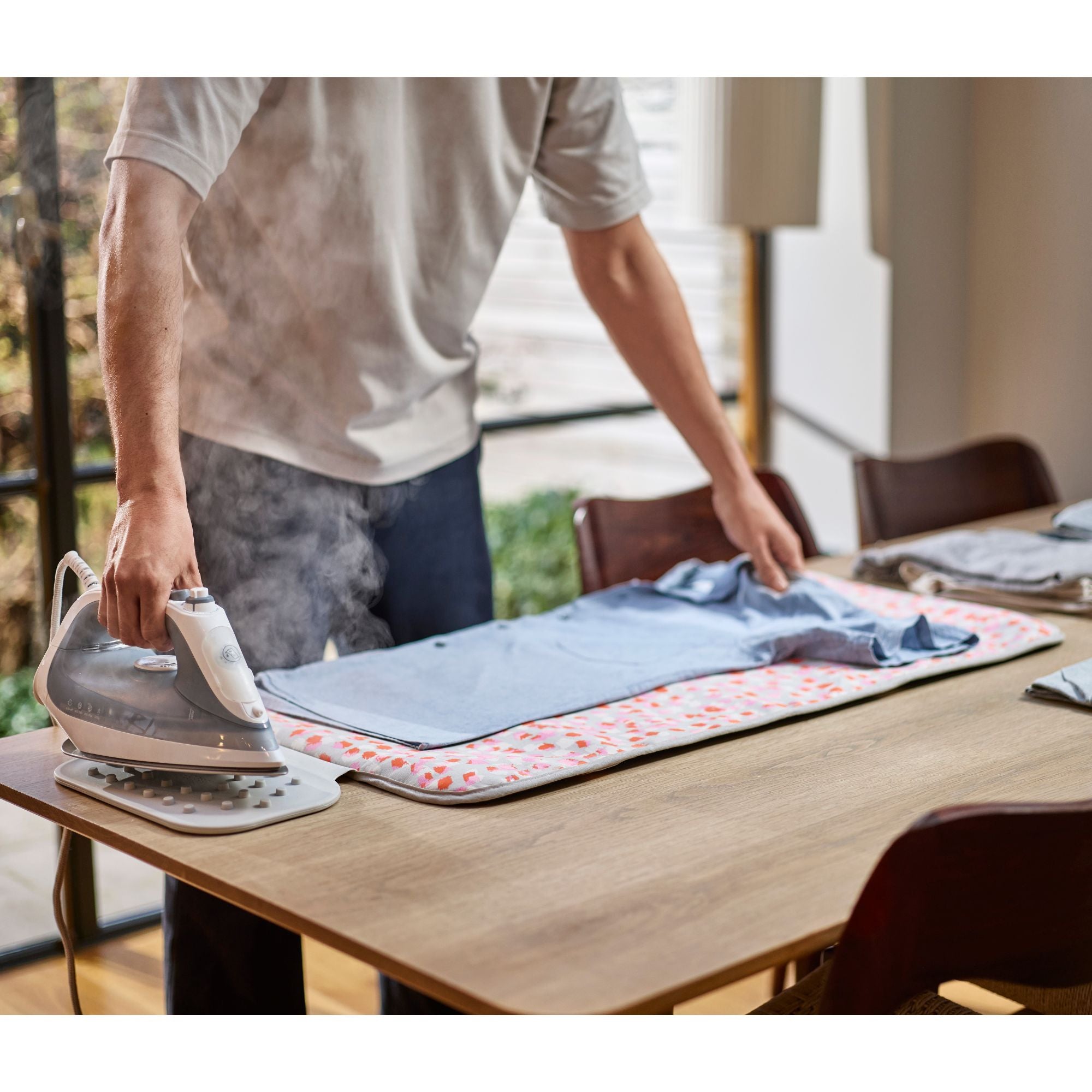 Swift™ allows you to set up an ironing space on any flat surface, delivering high-quality, quick and easy ironing every time.