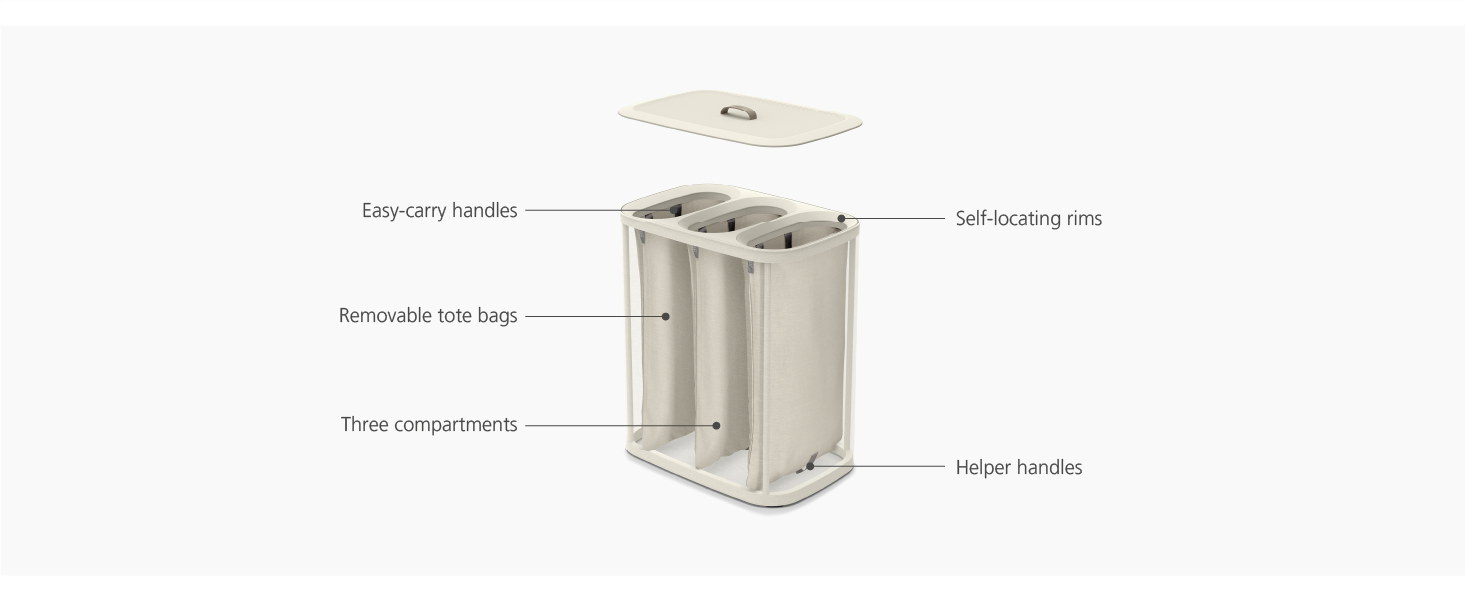 Joseph Joseph's bestselling laundry basket just got an upgrade with three compartments for separating garments. Removable, easy-carry tote bags make for effortless emptying, while the versatile Ecru colourway blends seamlessly into any room.
