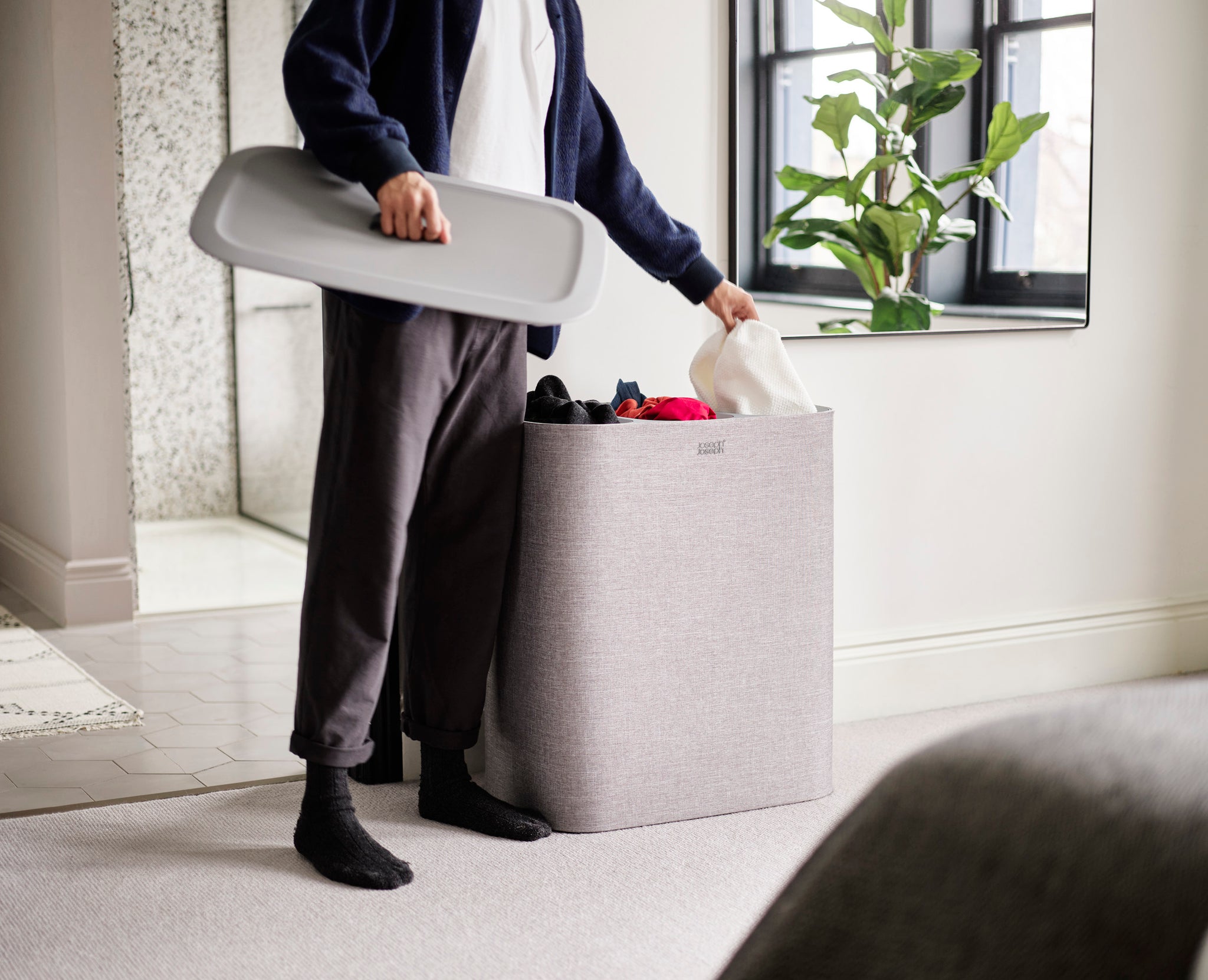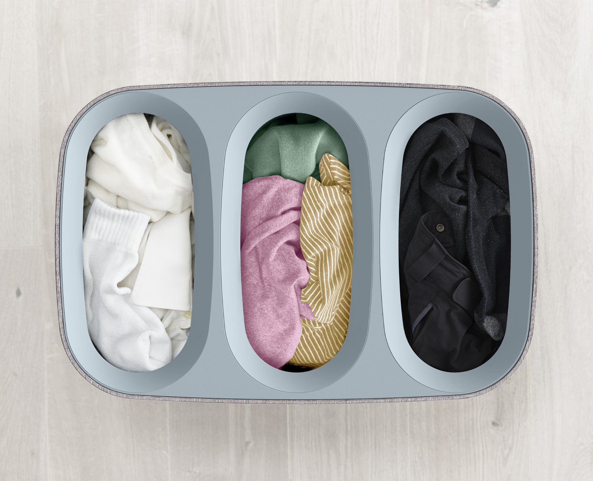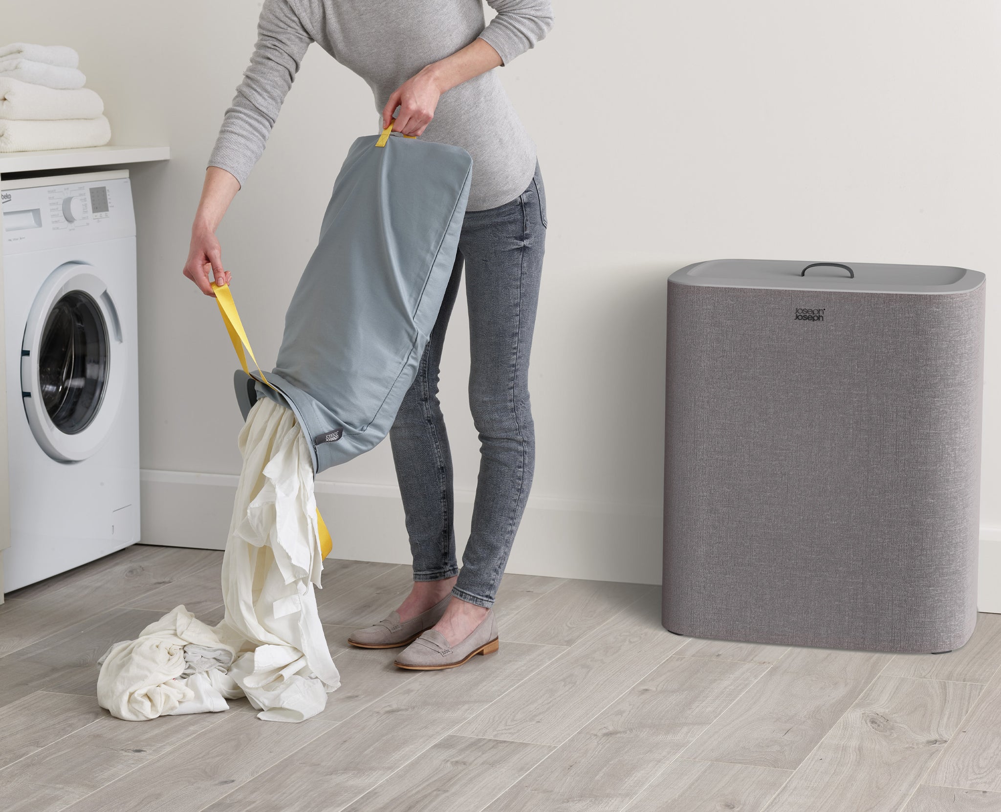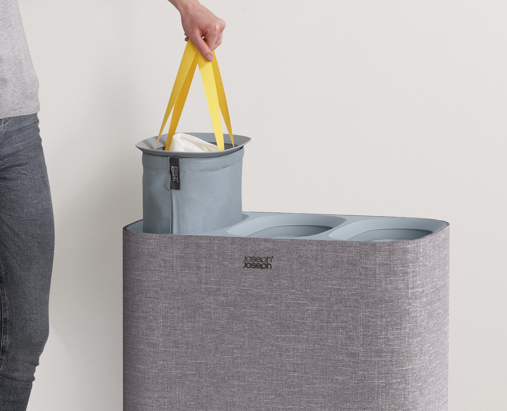 Joseph Joseph's bestselling laundry basket just got an upgrade with three compartments for separating garments. Removable, easy-carry tote bags make for effortless emptying, while the versatile colourway blends seamlessly into any room.